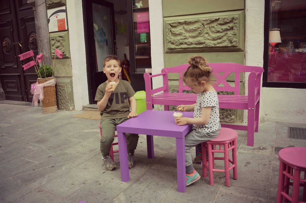 V Celjskem mestnem parku smo obiskali otroška igrala, kjer so se otroci igrali, a nam je hitro postalo prevroče, zato smo se umaknili v senco in se nato odpravili še na kosilo ter na sladoled.